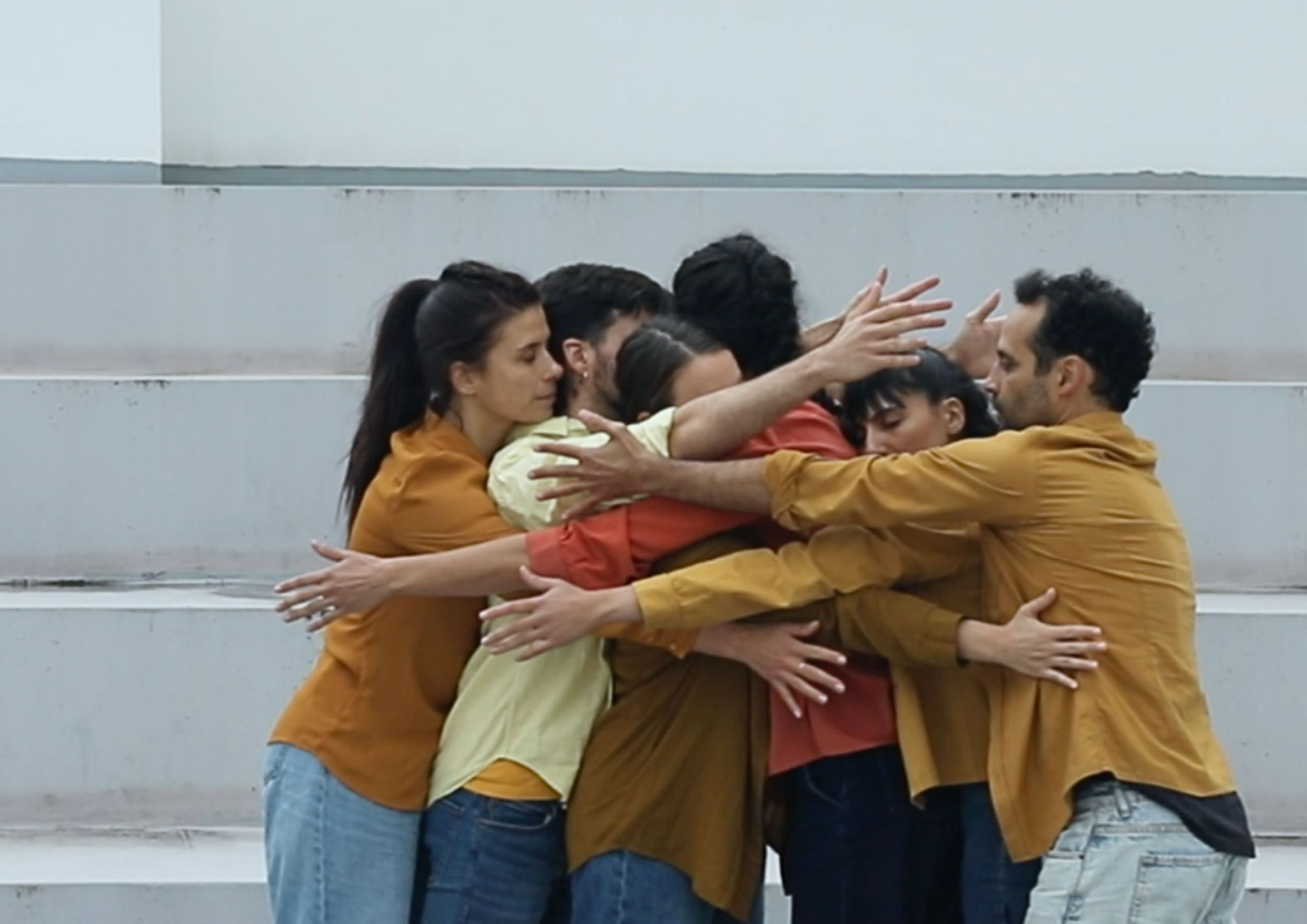 Nous danserons avec nos peaux-tissus, des corps appuyés les uns sur les autres, pour fabriquer des abris collectifs, peser ensemble, s'appuyer les un.e.s contre les autres, se déployer ensemble, se balancer, flotter, se soulever, se secouer vers des élans collectifs en relai.